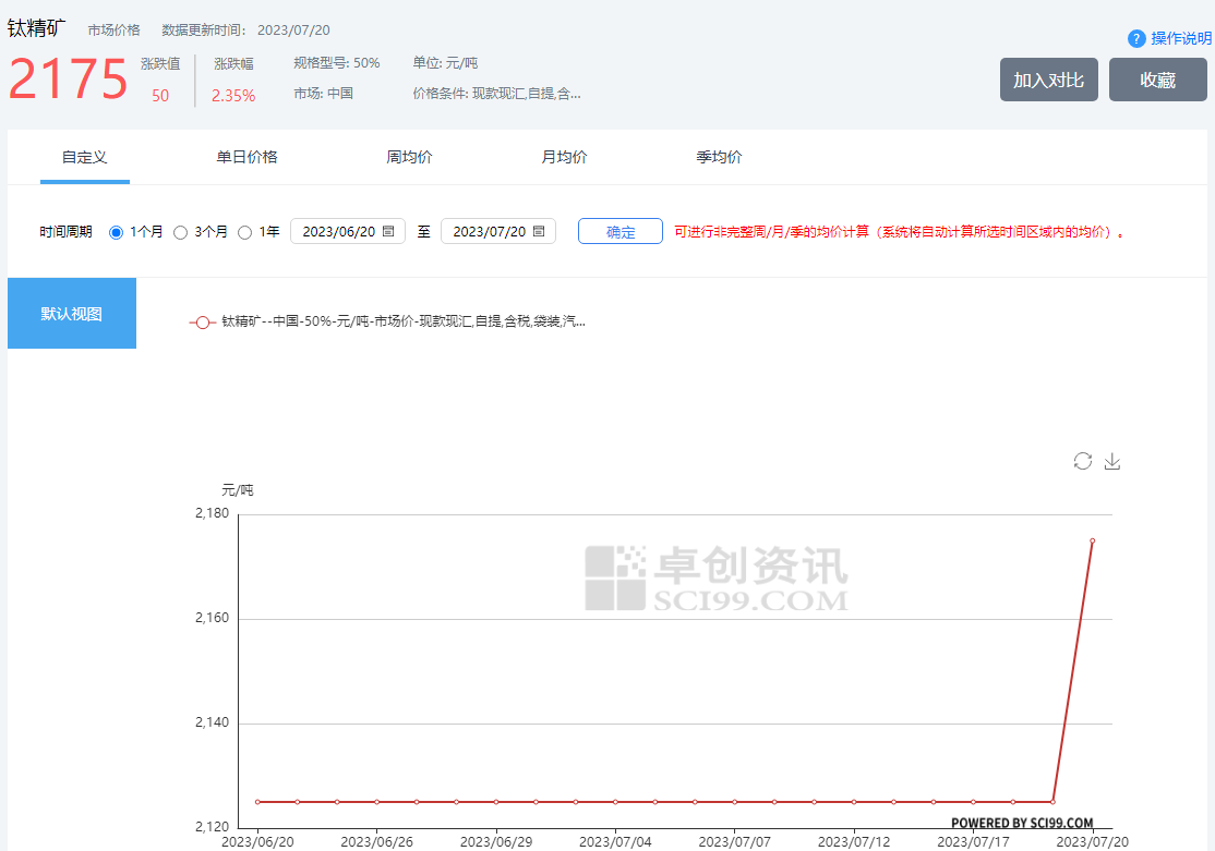 三、鈦精礦、海綿鈦近一月價(jià)格變化