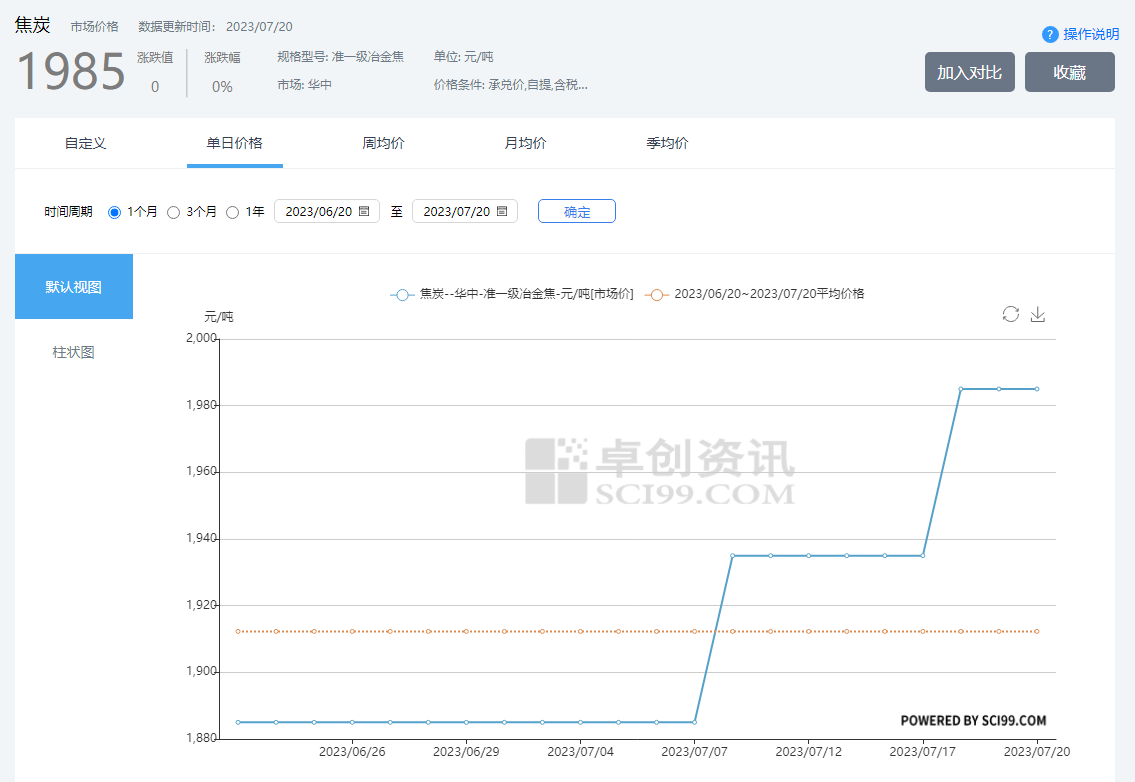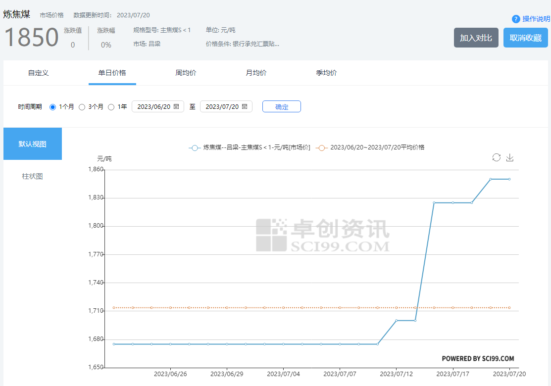 一、近一個(gè)月焦炭?jī)r(jià)格走勢(shì)(截至7月20日)